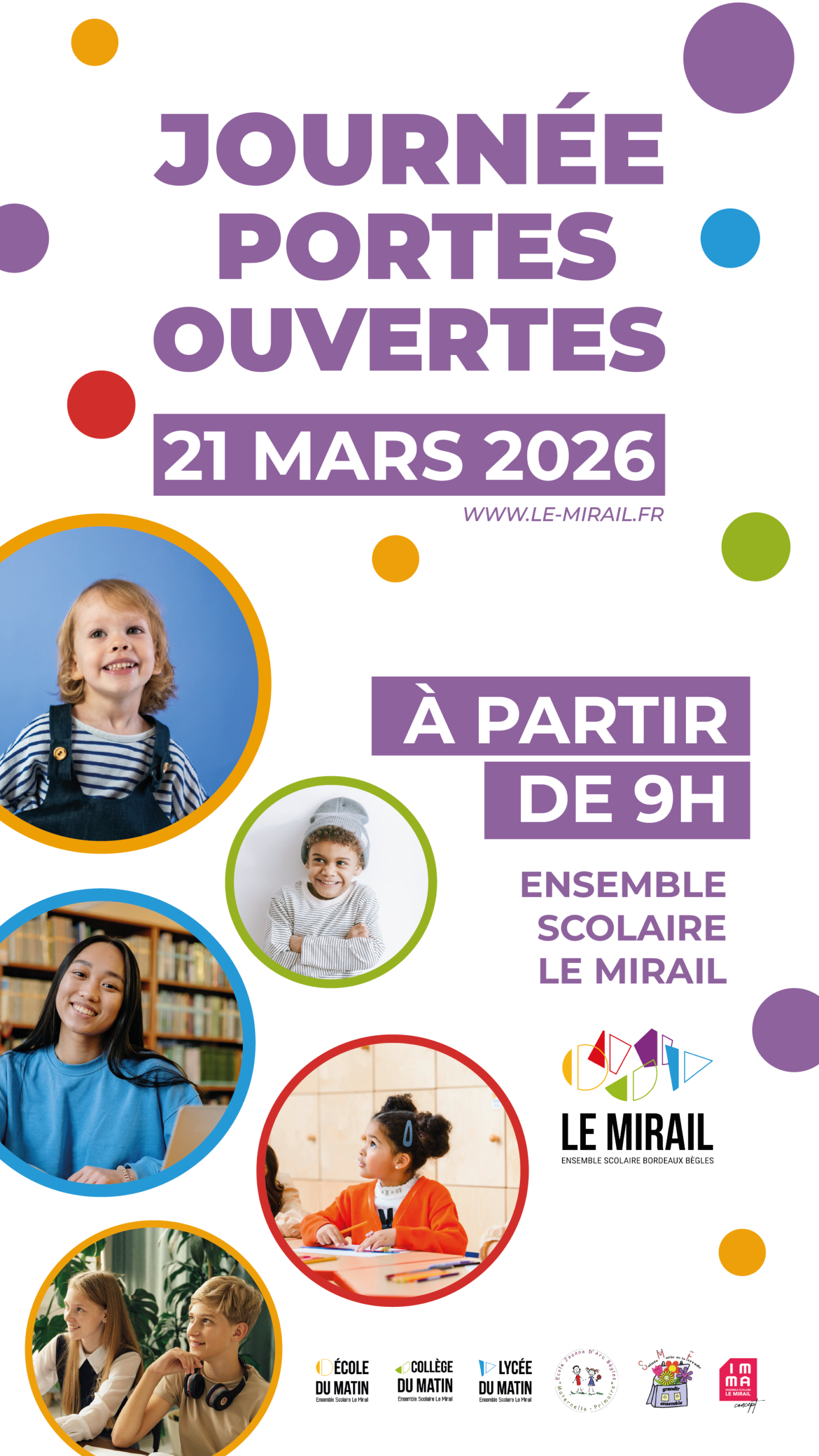 L’Ensemble Scolaire Le Mirail a le plaisir d’ouvrir ses portes aux familles le samedi 21 mars 2026 à l’occasion de sa Journée Portes Ouvertes. Cet événement est un moment privilégié pour découvrir nos établissements, notre projet éducatif et l’environnement dans lequel les élèves évoluent au quotidien.